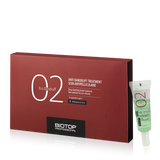 אמפולה לטיפול עמוק נגד קשקשת וקילוף של הקרקפת. חומר טיפולי אקו דנדרוף נגד קשקשים- מתאים לכל סוגי השיער עם קשקשים מבית ביוטופ. אמפולות ביוטופ נגד קשקשים הינו חומר טיפולי מולטי ויטמין וחומצות אמינו להזנה ולטיפול מושלם. מנקה ביעילות ובמהירות את השיער ואת עור הקרקפת. האמפולה מעניקה לשיער ניחוח נעים, ויחד עם זאת מגן על השערה ומזין אותה מהשורשים ועד הקצוות. ניתן לראות תוצאה ממשית לאחר 3 טיפולים רצופים. מתאים לכל סוגי השיער. השיער נותר נקי, בריא ומלא ברק.